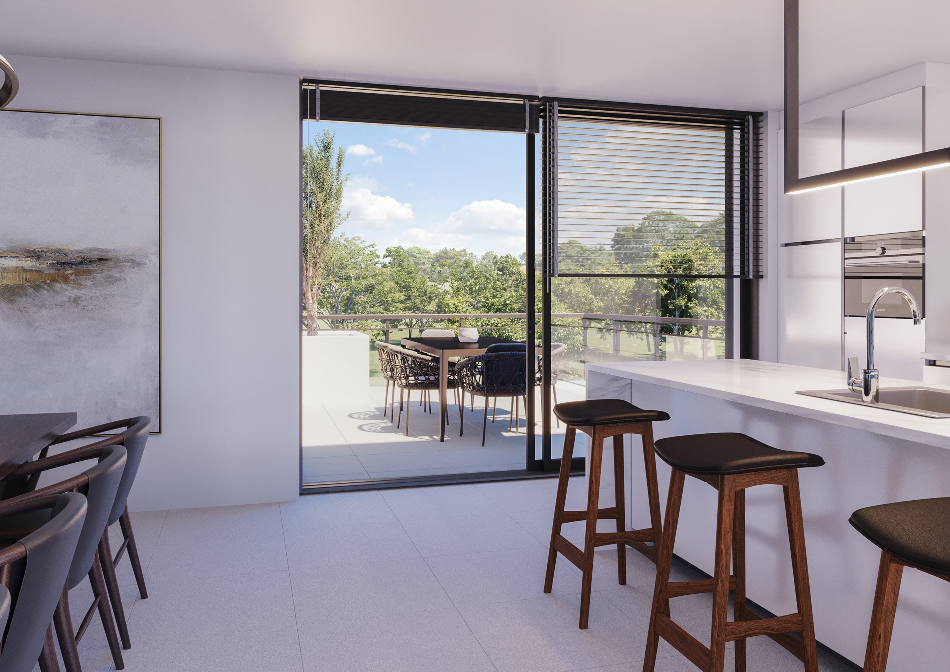 Licht doet leven, en zeker thuis. Al onze woningen hebben grote raampartijen voor maximale lichtinval, van ‘s morgens tot‘s avonds. Bovendien voldoen onze ruime ter-rassen aan alle voorwaarden om ‘buiten’ te wonen. Hier geniet je in alle rust van een vrije namiddag of een gezellig etentje met vrienden in de buitenlucht.